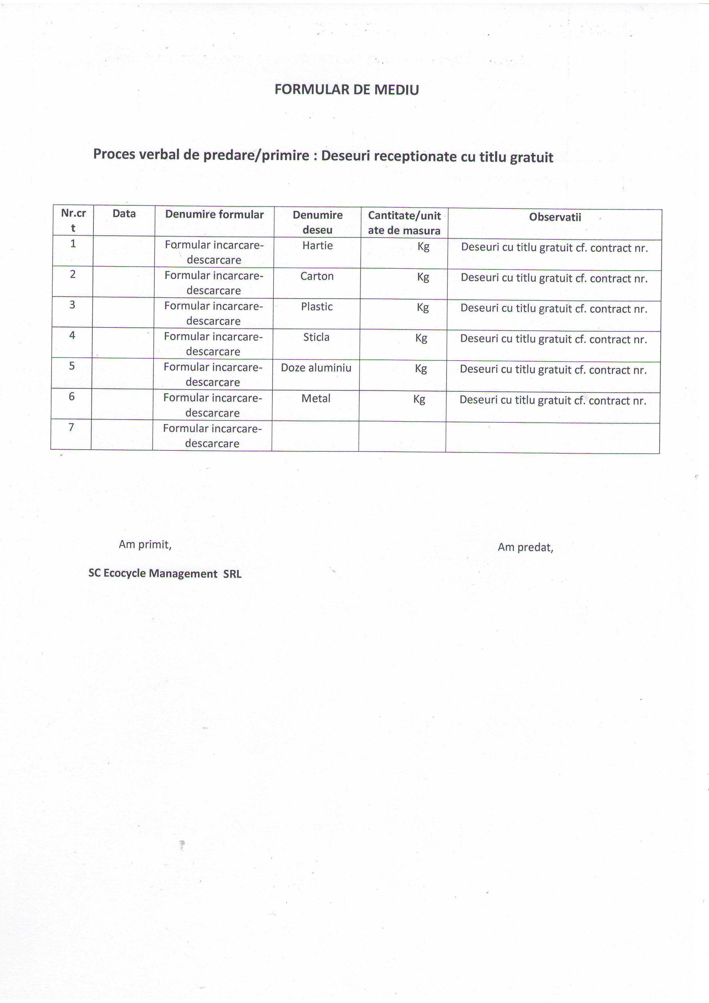 Acceseaza seturile de formulare necesare pentru incarcare-descarcare, predare-preluare si evidenta deseurilor.