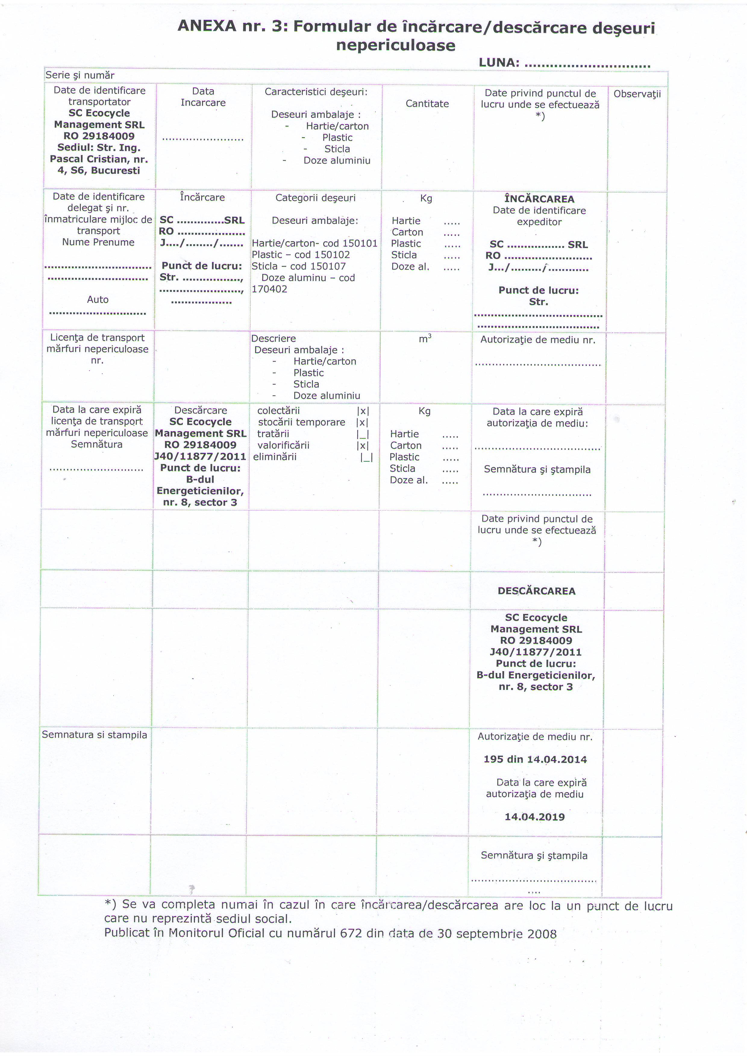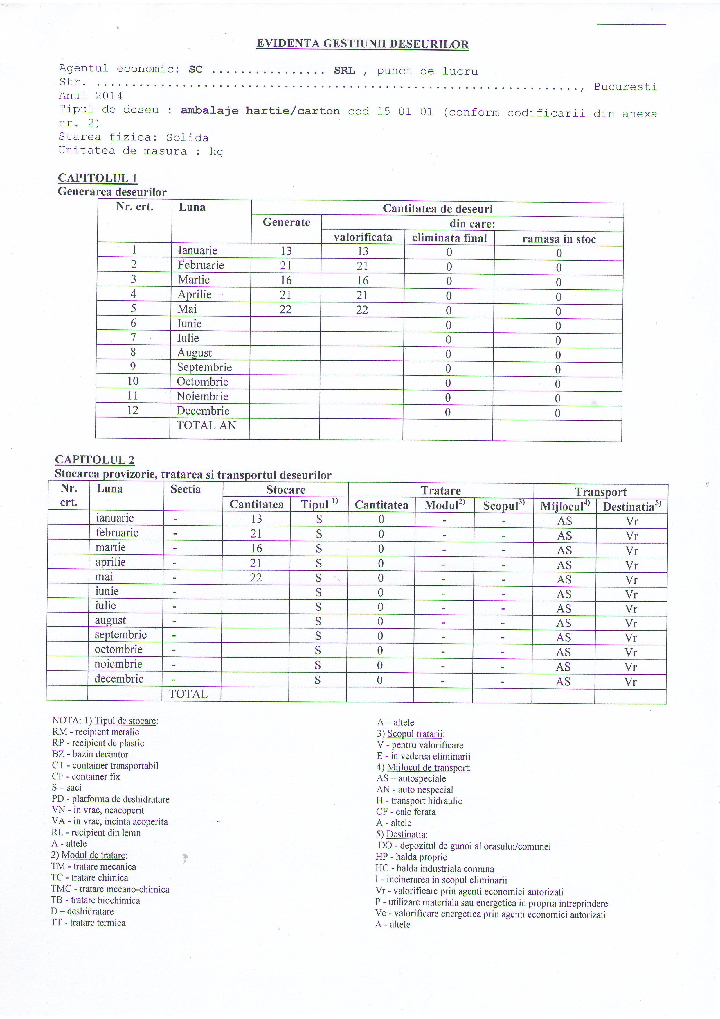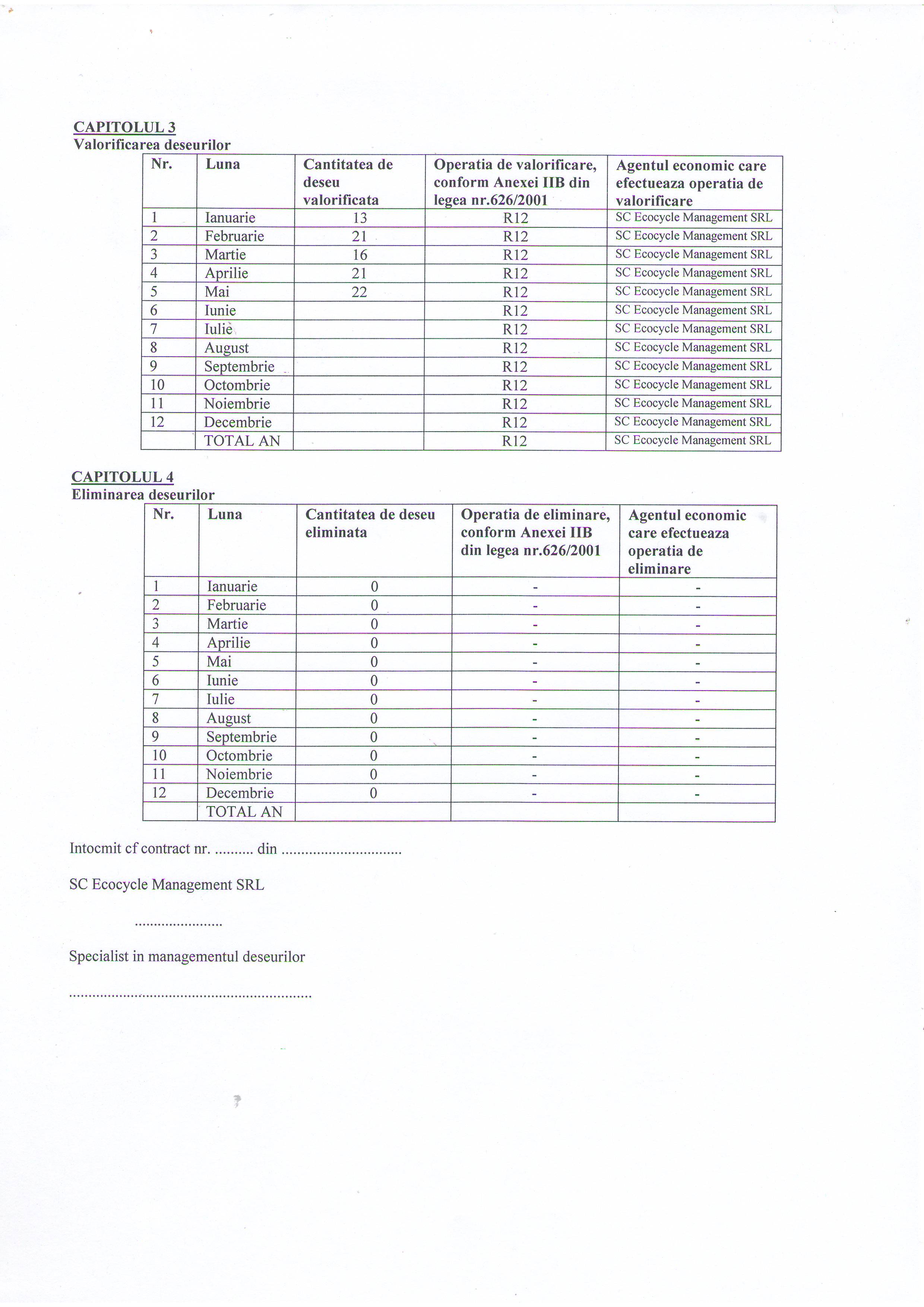 Intocmirea evidentei deseurilor si depunerea tuturor declaratiilor prevazute de legislatia in vigoare.